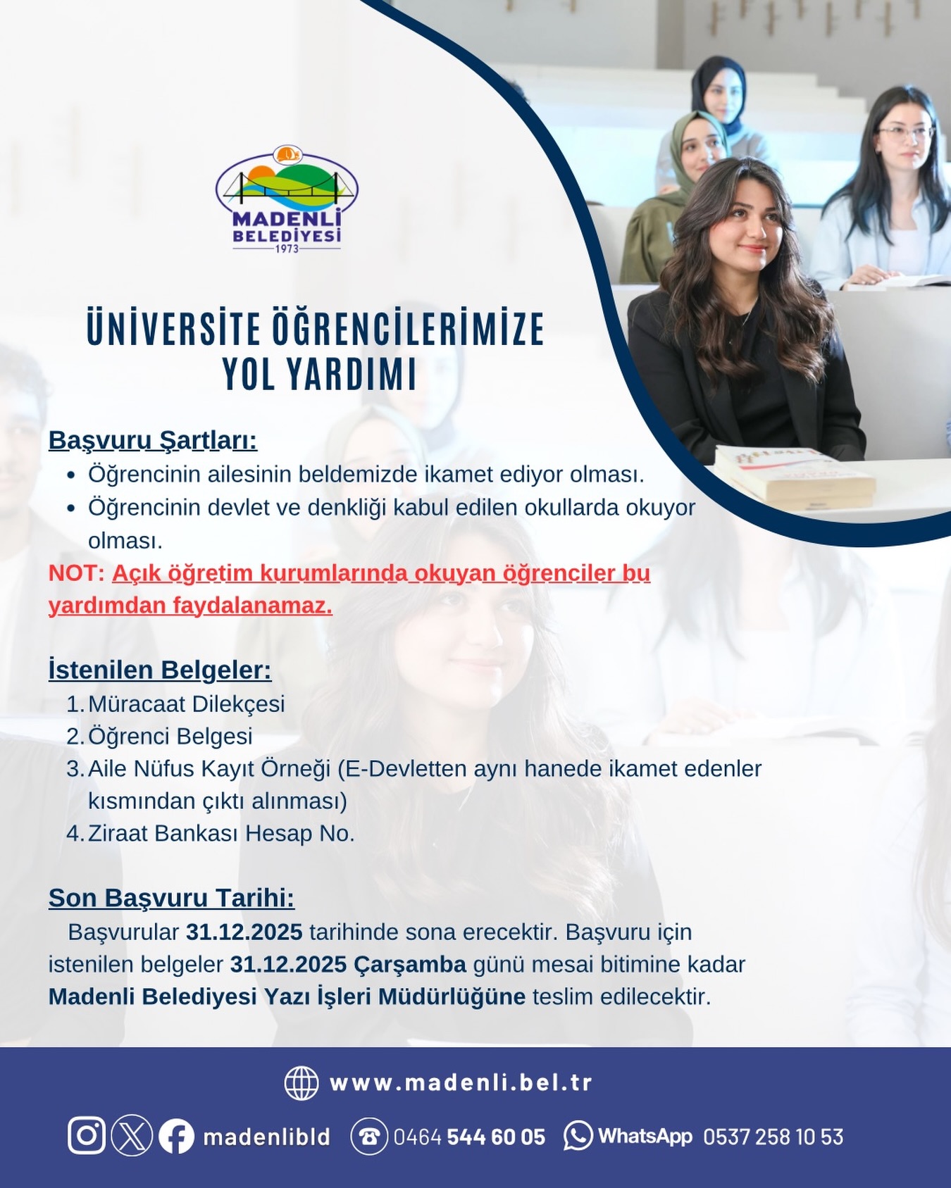 ÜNİVERSİTE ÖĞRENCİLERİMİZE YOL YARDIMI